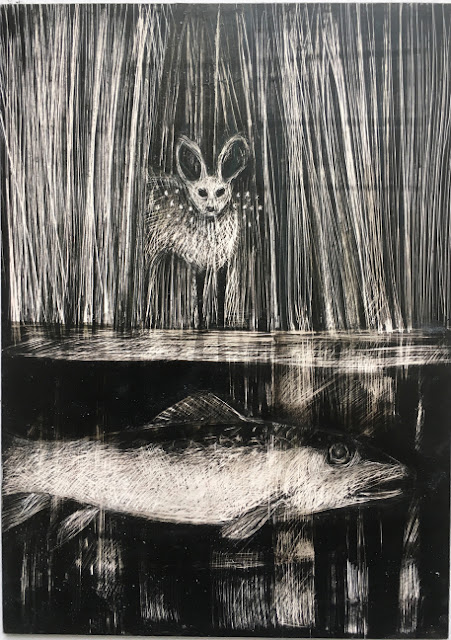 My most recent project for Zephyr (Head of Zeus) The Snow Angel novel by Lauren St John has been another learning curve: a front cover with black and white interiors. These interiors were executed on clay board – a new technique for me which I absolutely relish for its organic qualities and mark making possibilities.